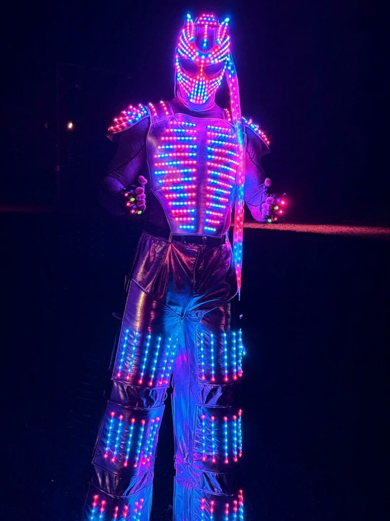 .Découvrez nos échassiers robots lumineux : une animation spectaculaire et futuriste !