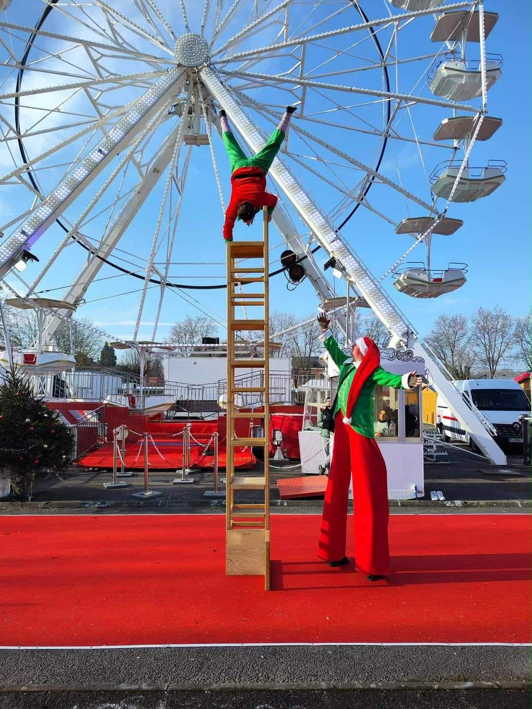 Sur une simple chaise, l’équilibriste compose un dialogue subtil entre force et fragilité. Chaque appui devient un point d’ancrage, chaque déplacement un frisson. Suspendu entre ciel et sol, il transforme la verticalité en un langage poétique où le déséquilibre devient matière à créer.